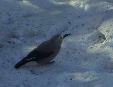 I mentioned on Friday that a Clark's nutcracker (named for William Clark) had showed up at our house, a little lower in altitude than we normally see them.